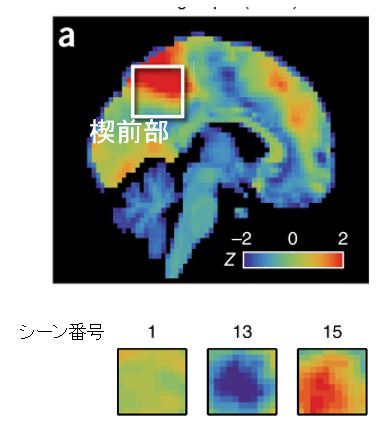 ヒトの「心」を反映するデフォルトモードネットワーク(腹側内側前頭前野や楔前部の一部)、