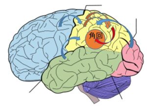 また頭頂葉は一般に様々な感覚情報がまとめられる領域なのですが、その頭頂葉の中でも角回というのは情報統合のまとめ役的なポジションにおり