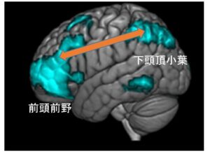 ちなみにこのエグゼクティブネットワークとは前頭葉の中でも高次の領域である前頭前野と、頭頂葉の中でも角回を含む高次の情報処理に関わる下頭頂小葉を結ぶようなネットワークで、
