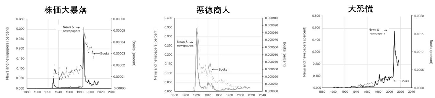 世間に流布する言葉もこのような感染症グラフと同じような動態を示すことがグーグルの文献データベースで示しうることが述べられています。
