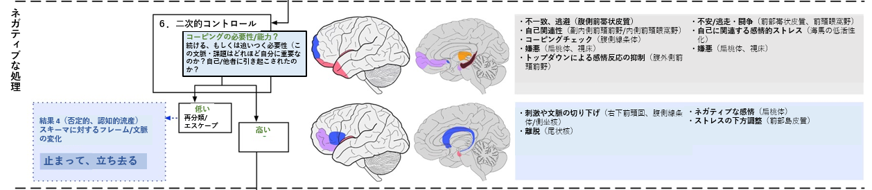 ネガティブ処理段階では、前頭眼窩野と扁桃体、
