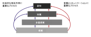 それゆえ自閉症スペクトラム障害における感覚処理のさまざまな問題が、上の図に示すように広範な高次機能に影響を及ぼしているのではないかということが述べられています。