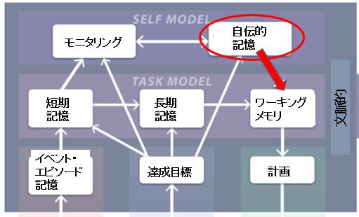図を見てもらえば分かるのですが、ワーキングメモリの上位に自伝的記憶というものがあります。