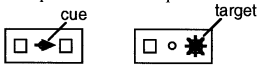 どちらの四角形が目を向けるべきか事前に手がかり刺激(図中の矢印)が示されます。