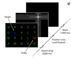 また2つ目の実験ではトップダウン的な注意とボトムアップ的な注意を競合させる課題を行っています。