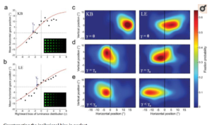結果を示すと、画面の明るさに勾配をかけない状態では視線が右側に偏っているのに対し(上図右上)