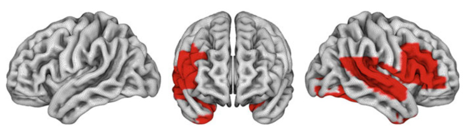 また脳の内側、とりわけ前頭葉と頭頂葉の内側の部分はデフォルトモードネットワークと呼ばれるネットワークを構成している。このネットワークは心の理解に関わる領域でもあり、この領域が活動することで怒りをコントロール出来るのではないかとも論じられている。