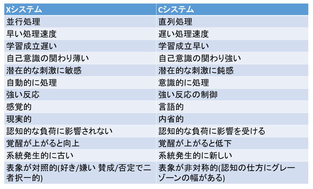 普段の生活の中でも私達は直感的に判断することもあれば、しっかり考えて判断することがあります。一目惚れで恋に落ちるようなものは直感的な判断ですし、お見合いで結婚を判断するようなときには、熟慮に熟慮を重ねて判断することもあります。脳の中にはこの2つの判断に関わる仕組みがあり、ある研究者はこれらをXシステムとCシステムと名付けました。いまいち人間味がないネーミングだと思うのですが、以下にその特徴と関連領域を紹介します。ちなみに臨床研究では、Cシステムが病気や怪我で損傷することで、熟慮が必要な判断ができなくなることが分かっています。