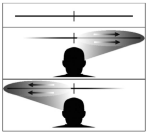 実験では左右対称に分けられた横棒を見せ、どちらのほうが長いかについて被験者に回答させてその空間認知の偏りについて調べています。