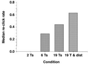これを検証するために標的刺激をTではなく、具象的なイラストに変えて行ったところ、再クリック率が低下しており、