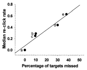 (縦軸は平均の再クリック率、横軸は標的刺激の数)