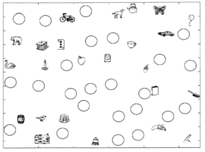 トランプ遊びで神経衰弱というものがありますが、あれと同じようにカードの数(標的の数)が増えるほどに何度も同じカードをめくりやすくなる(同じ標的を選びやすくなる)、それゆえどこに視線を動かしたかという記憶機能に問題があるのではないかという仮説が立てられ、