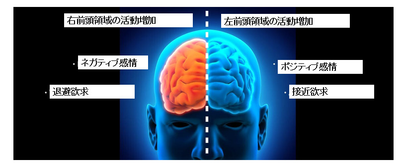 もう一つは肯定的な感情は左脳、否定的な感情は右脳によって処理されるというモデルです。動物の基本的な性向として、好ましいものには接近し、好ましくないものからは離れていくというものがあります。これを反映するように、何かに接近しようとする時には左前頭前野の活動が、離れようとする時には右前頭前野の活動が高まることを示した研究もいくつかあるものの、全体的に見るとこのモデルも実際の感情状態を反映していないことが示されました。