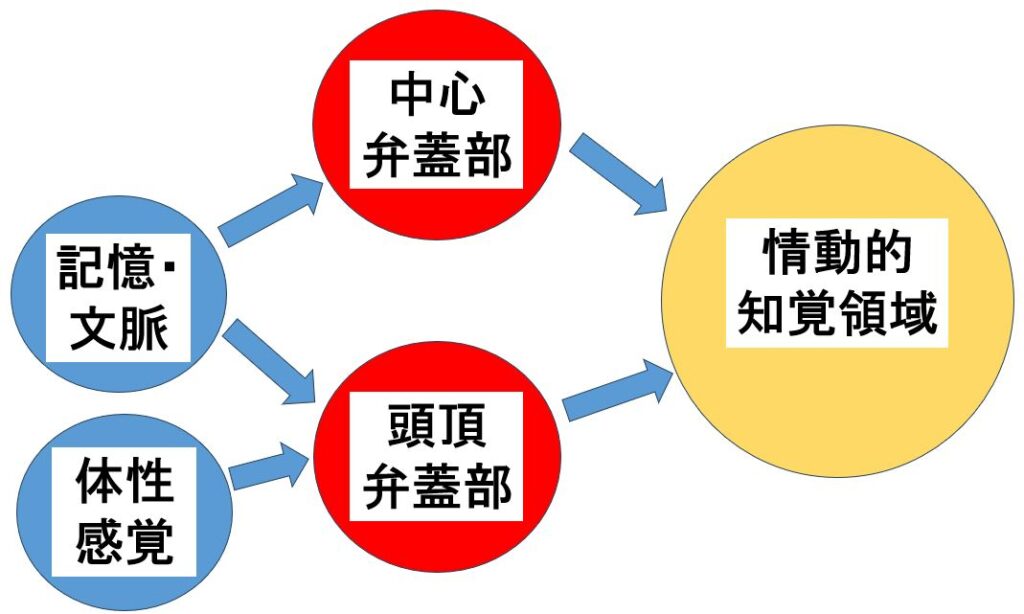ちなみに弁蓋部というのは、島皮質を蓋をするような場所にある脳領域で、中心弁蓋部は様々な情報を集約して情動的知覚をコントロールする働きがあり、頭頂弁蓋部は体性感覚情報と記憶情報を集約して、情動的知覚を調整する働きがあります。