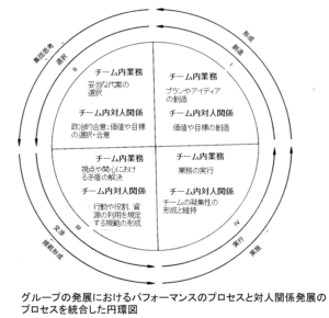 ある課題をこなしていく中で、人間関係もそれに伴い成熟し、これを数回こなしていく中でチームの文化・人間関係が安定していくことが示されています。