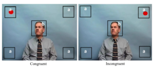 実験では被験者に以下のような動画を見せ、実際に共同注意を引き起こさせます。