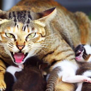 ところがこのオキシトシンは攻撃性にも関係していることが分かっています。例えばオキシトシンを投与することで、自分と同じ社会的背景を持つもの(人種・国籍などが同じもの)に対しては行動が親和的になるものの、同時に部外者に対しては攻撃性が高まることが報告されています(de Jong et al., 2018)。また女性においてはオキシトシンレベルが高いほど攻撃性も高いこと(Bosch et al.,2005)や、オキシトシンを投与することでオキシトシンを投与することで、より嫉妬深く、より意地悪になることも報告されています(Shamay-Tsooryら, 2009年)。オキシトシンは社会性を高め、世話をする傾向も高めるが、その反面、嫉妬と攻撃性も高めうるということになります。仲間を守るという愛情は、仲間ではないものを排除する攻撃性ともいえます。子猫を守る母猫はオキシトシンレベルが高いのではないかと思ったりもします。