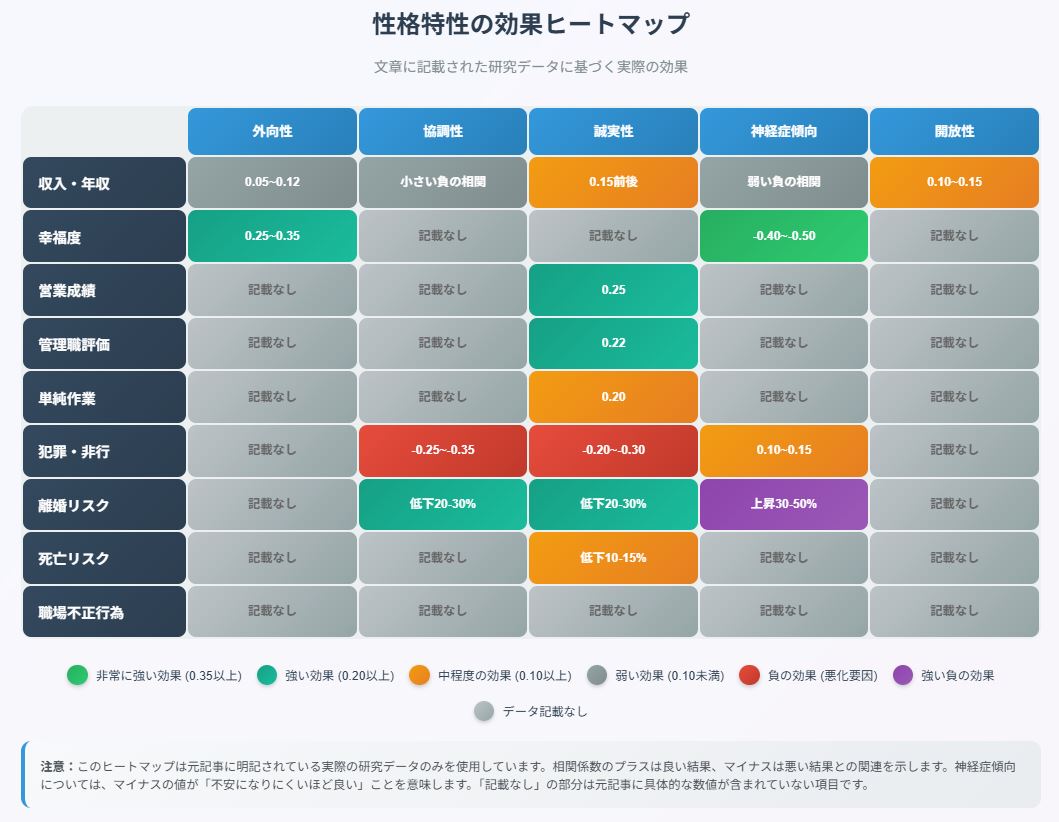 本記事では、性格特性がもたらす「リアルな数字」を、学術研究の知見から詳しく解説する。