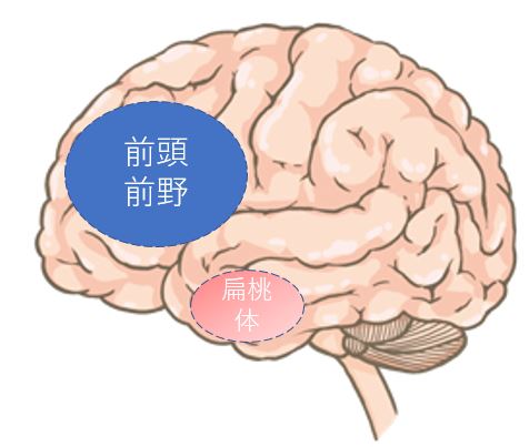 ・恐怖や不安の中枢である扁桃体の活動が高くなっている。