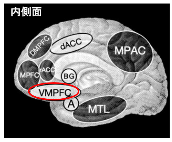 偏見というと言葉の響きはよくありませんが、私達は何を見るにしても色眼鏡でものを見ています。ステレオタイプでものを見るのは良くないのかもしれませんが、あまり深く考えないで判断できるという省エネ的メリットもあります。脳の中でこの偏見に絡んでいる領域としては、扁桃体と腹内側前頭前野があります。扁桃体は不安や恐怖の中枢で、白人が黒人の写真を見た時に反応することを示した研究がいくつか報告されています。また腹内側前頭前野(VMPFC)は前頭葉の内側にある領域で、主観的な判断に関わる領域になります。この領域は好みのブランドのロゴマークを見た時にも活動することが分かっています。