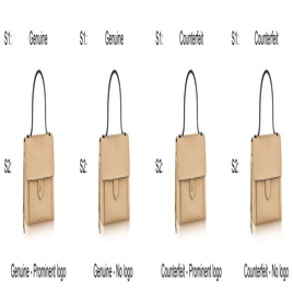 ある研究では、ブランド品のバッグと偽ブランド品のバッグを見せたときの脳の反応を調べている。実験条件は、本物/偽物とロゴあり/ロゴ無しの掛け合わせの4条件だ。被験者には事前に、それが本物か偽物かが伝えられたうえで以下の画像が示される。