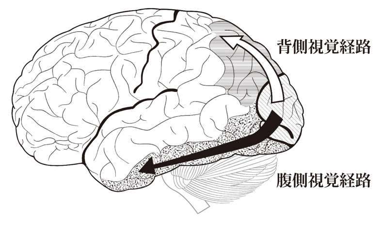もう一つは頭頂葉へ抜けていく背側視覚経路で、これは見えたものがどこにあるかという空間情報の処理に関わる。