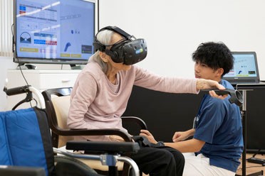「神楽」は基本的には臨床現場で行われるリーチ訓練をベースにしたもので、患者はゴーグルをかぶってゲーム感覚で訓練を行う。