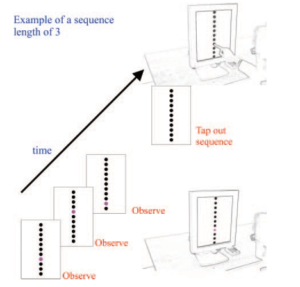 これは画面の中央にあるため、理論的には半側空間無視患者の左無視の影響を受けず、純粋に空間的ワーキングメモリを調べることが出来ます。