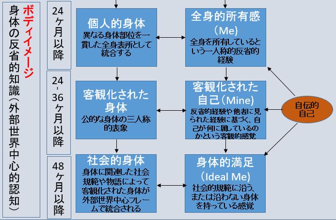 モノマネができるようになるのは2歳なので、発達学的に考えれば、私には手や足やお腹がつながった一つの全身があるという認識はこの時期にできるのではないかということが考えられます。