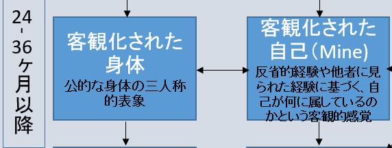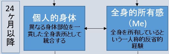 このように、出生直後から生後7ヶ月以降のこの段階にかけて自己中心フレームに基づいた身体感、ボディスキーマが発達してきます。